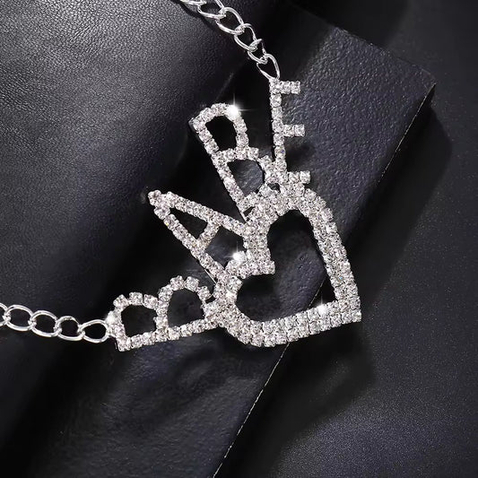 Babe Letters Heart Belly Chain | Adjustable Micro Pave Bling Glitter Rhinestone Waist Chain For Women ( 110 cm)